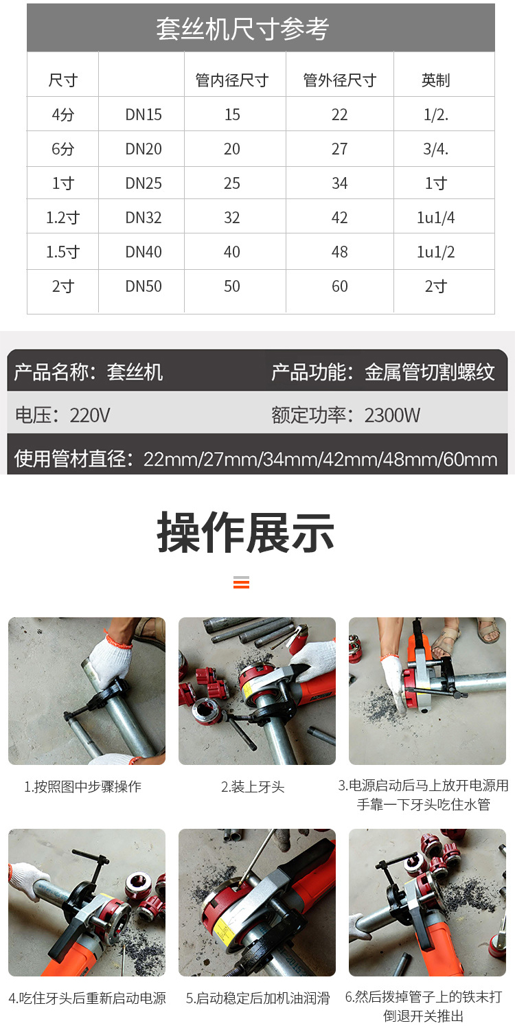便捷式手持电动套丝机 钢管塑料管铁管管道 铰扳 铰螺纹 镀锌管套丝